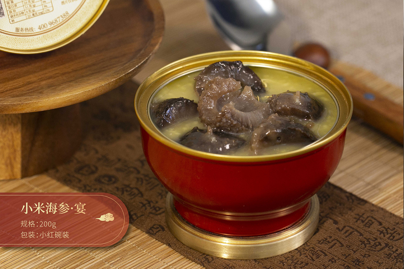 【配料】黃燜湯(飲用水、豬肉、雞肉、淀粉、雞粉調(diào)味料、食用鹽、南瓜)、鮑魚、蹄筋、海參、花膠、百靈菇、魚翅、螺片、干貝